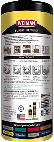 Buy Weiman Wood Cleaner and Polish Wipes - 2 Pack - Non-Toxic for Furniture to Beautify and Protect, No Build-Up, Contains Ultra Violet Protection, Pleasant Scent, Surface Safe - 30 Count